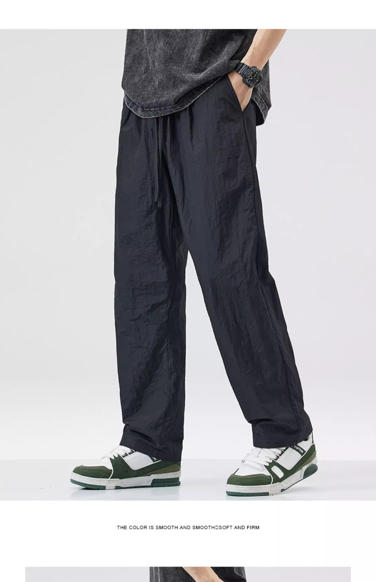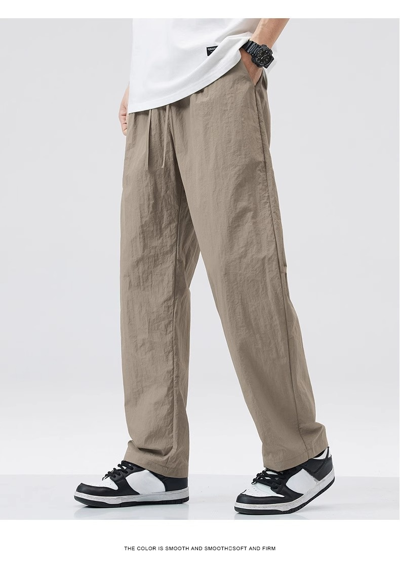 クールアイスシルクパンツメンズ夏薄手速乾ゆったりストレート作業着メンズパンツ夏スポーツカジュアルズボン