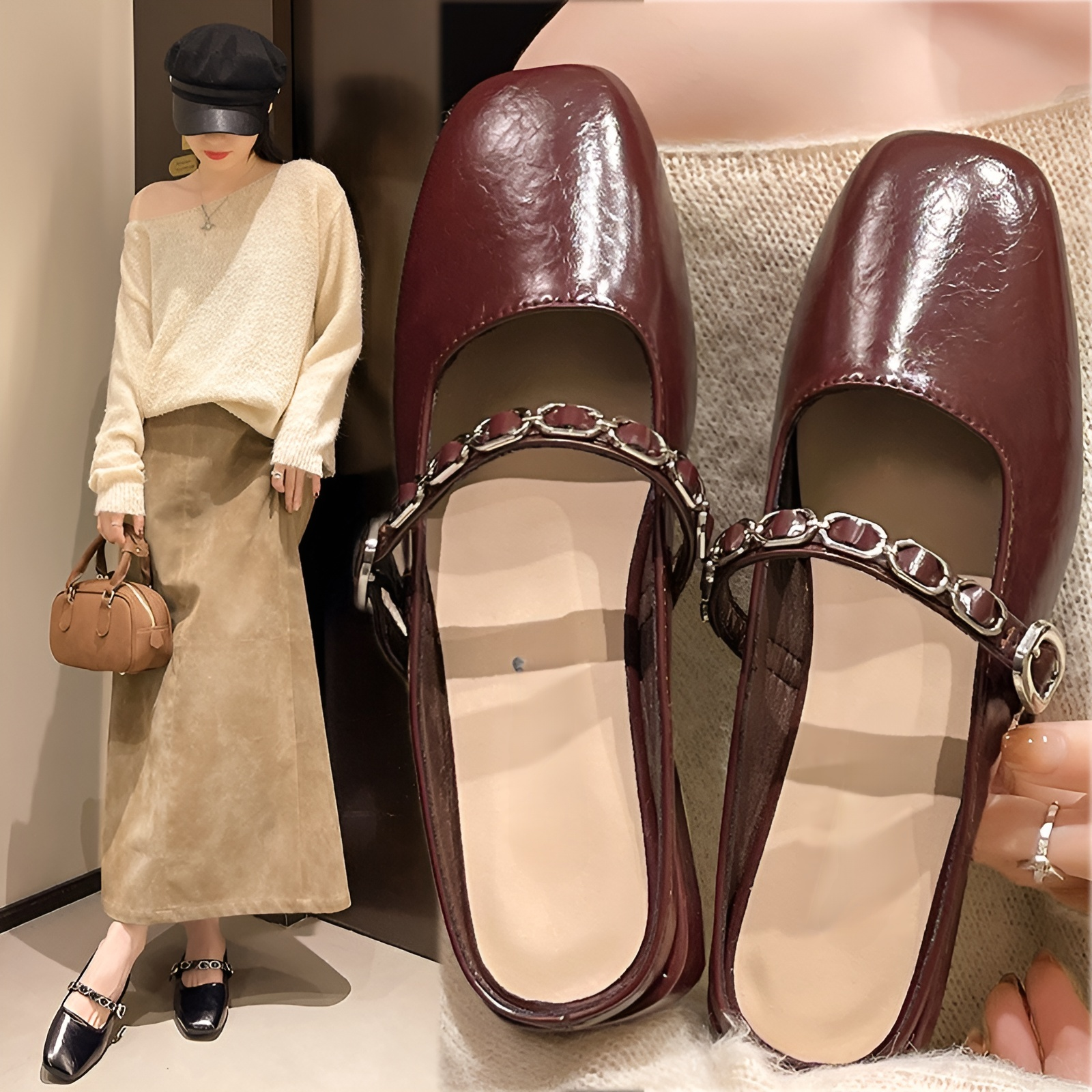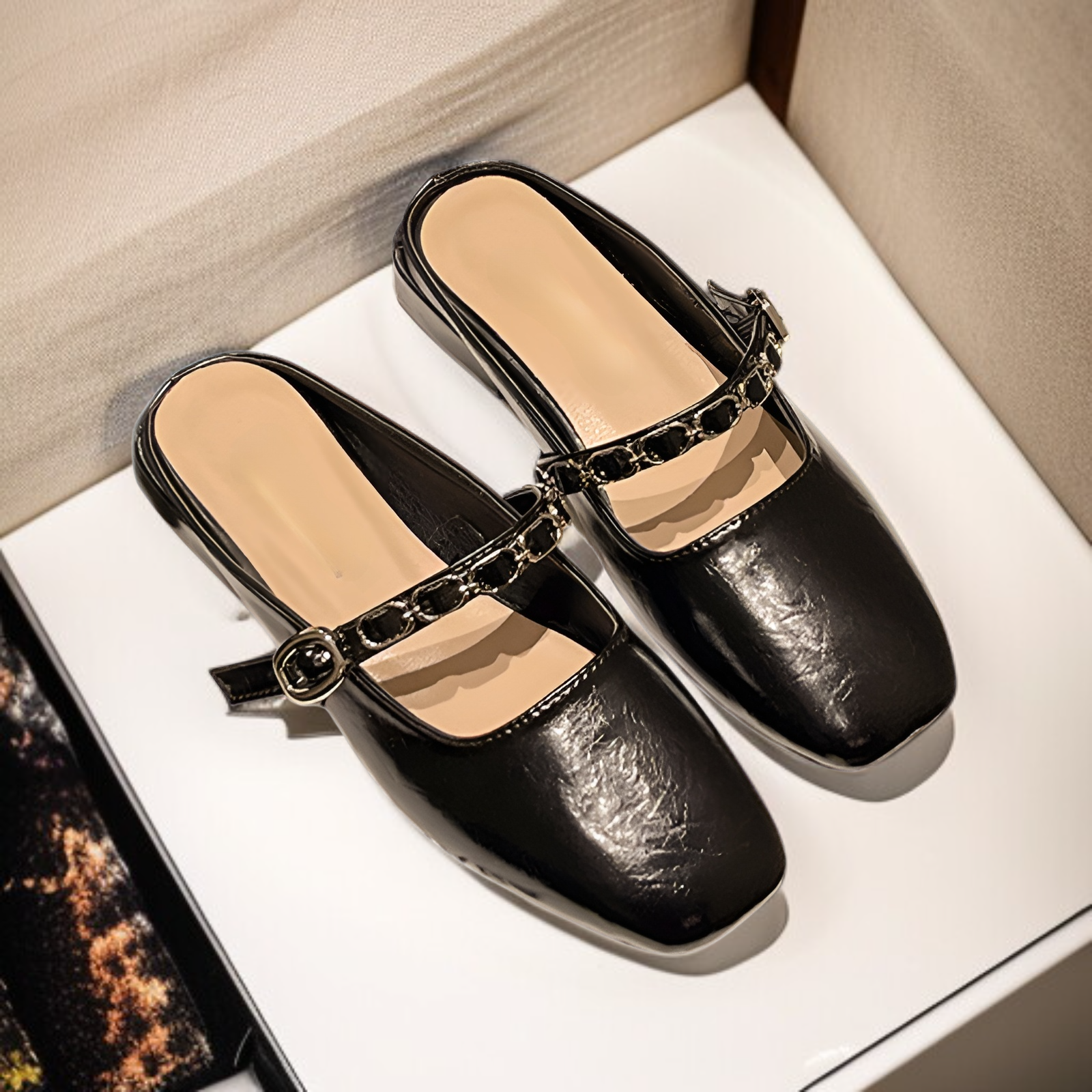 2025春夏サンダルファッションチェーンチャンキーヒールシングルシューズローヒールチェーンマッチングスカートサンダルレトロハーフスリッパレディースアウトドアサンダル